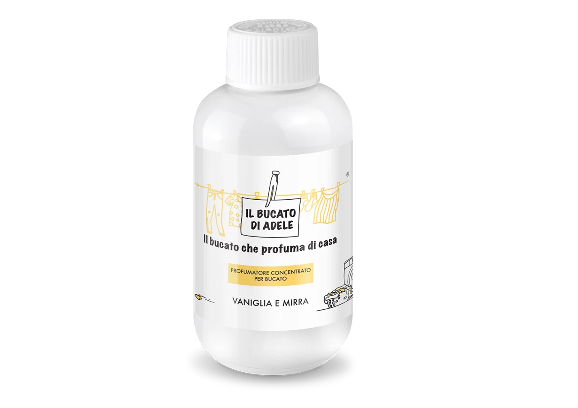 Una fragranza preziosa che inebria i sensi, rilassa la mente e ti avvolge con le sue calde note aromatiche. Perfetta per gli amanti dei gusti classici ed eleganti: lasciati coccolare da questa fragranza ricca e raffinata e porta sempre con te il dolce profumo della vaniglia. Vaniglia e Mirra. Una nota dolce e speziata di cannella e mirra, con un tocco di vaniglia e legno di cedro .Dose consigliata: 20ml .Puoi usarlo sia per i lavaggi in lavatrice che per quelli a mano, su qualsiasi tessuto. Puoi aumentare o diminuire la dose a seconda dell'intensità desiderata.